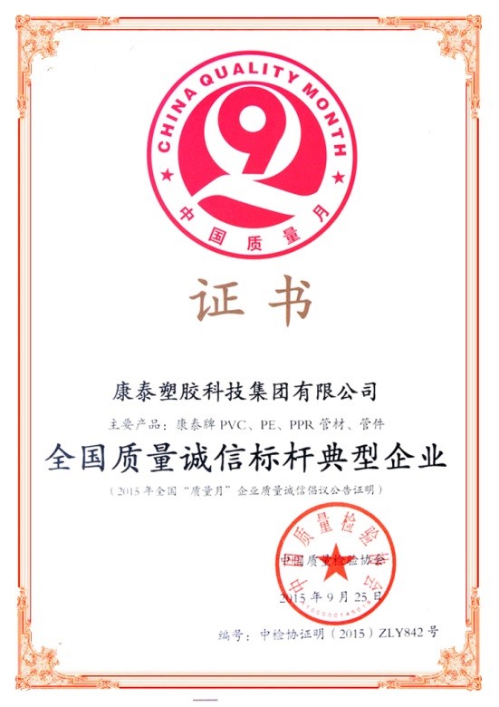 ?????? 近日,作為生態(tài)建材行業(yè)領(lǐng)導(dǎo)者企業(yè)的康泰集團(tuán)在2015年全國(guó)“質(zhì)量月”活動(dòng)中,被國(guó)家多家權(quán)威部門和協(xié)會(huì)評(píng)為“全國(guó)質(zhì)量誠(chéng)信標(biāo)桿典型企業(yè)”。此次榮譽(yù)的獲得,是康泰產(chǎn)品質(zhì)量的的充分肯定??堤┮矔?huì)以此會(huì)標(biāo)桿,積極履行質(zhì)量安全主體責(zé)任,與大家攜手邁向質(zhì)量新時(shí)代。