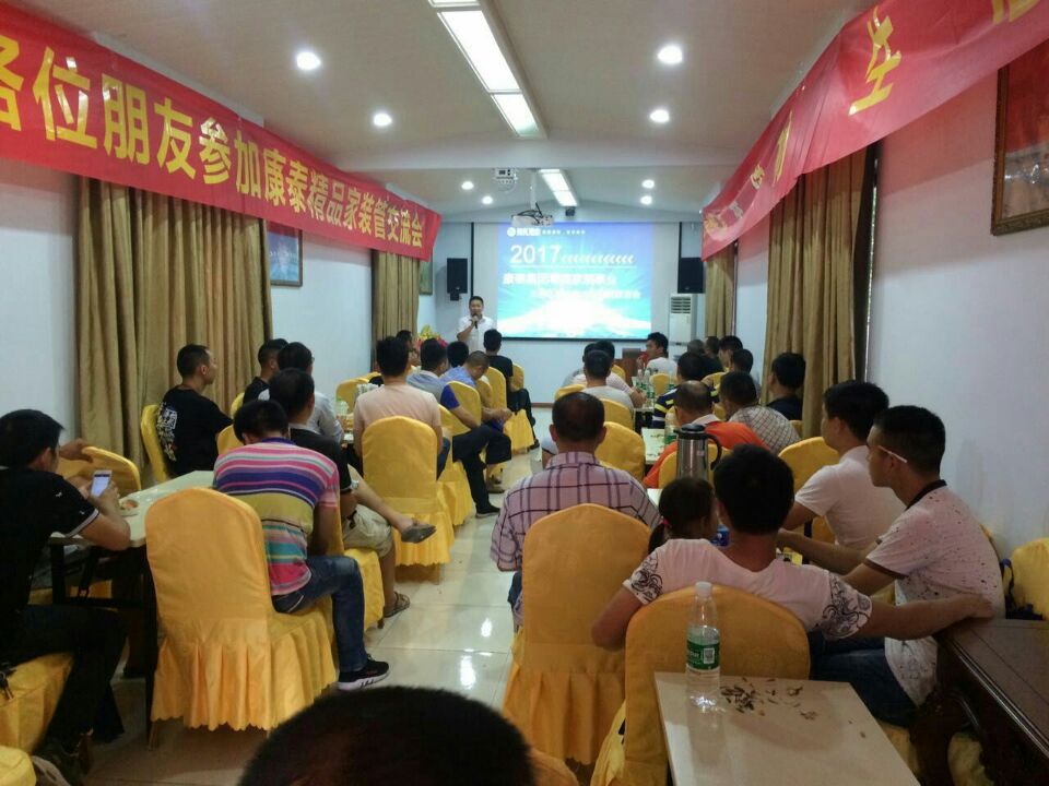 晚上八點,本次交流會議圓滿結(jié)束。本次會議不僅成功的向大邑區(qū)域全面展示了康泰家裝雄厚的企業(yè)實力、優(yōu)質(zhì)的產(chǎn)品品質(zhì)、強大的品牌形象,也展現(xiàn)了康泰家裝優(yōu)質(zhì)的售后服務(wù)體系和服務(wù)流程,贏得了廣大水電大師的贊譽。會議主題鮮明,宣傳海報林立,產(chǎn)品陣容整齊有序陳列。會后大家合影留念,共進(jìn)晚餐。會議取得圓滿成功。愿康泰零售家裝事業(yè)蓬勃發(fā)展、一路向前。康泰零售家裝大業(yè)我們在路上……